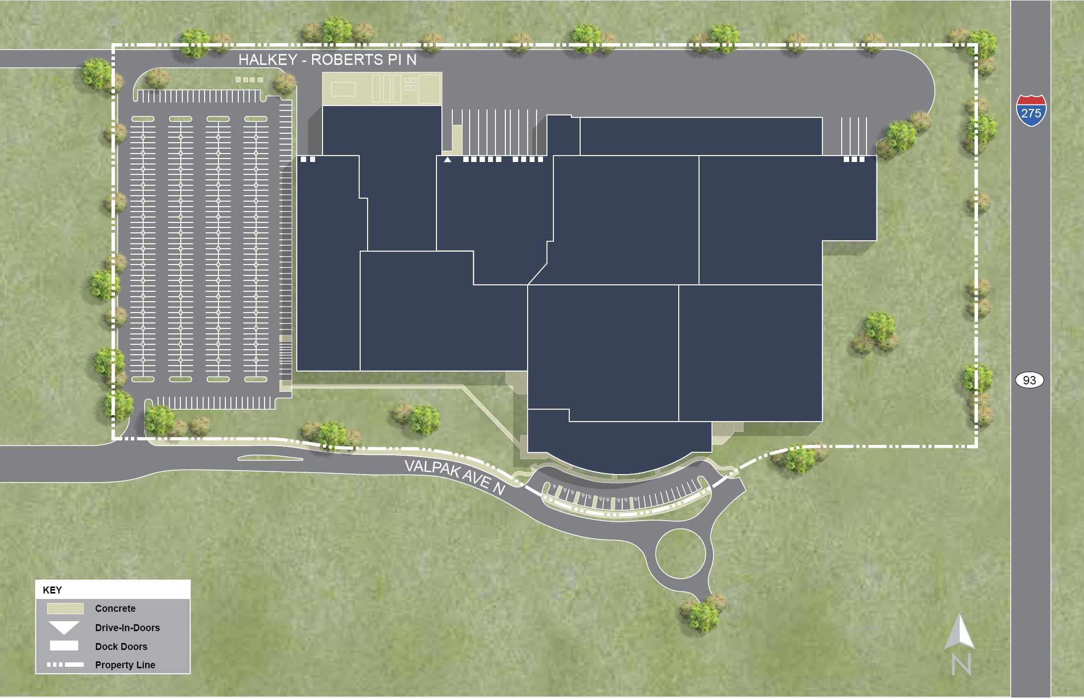 storage area, a large automated plate manufacturing area, a winder buffer area for storage, an automated high-density rack storage area, large high-bay storage areas, a waste handling area and numerous other niche storage and support areas. The building also offers critical utilities infrastructure and specialized substructure to accommodate